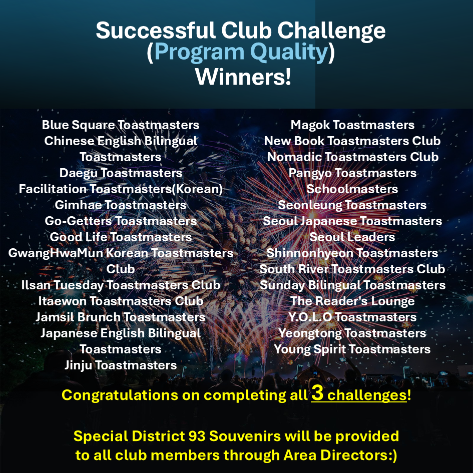 Dear District 93 Toastmasters,