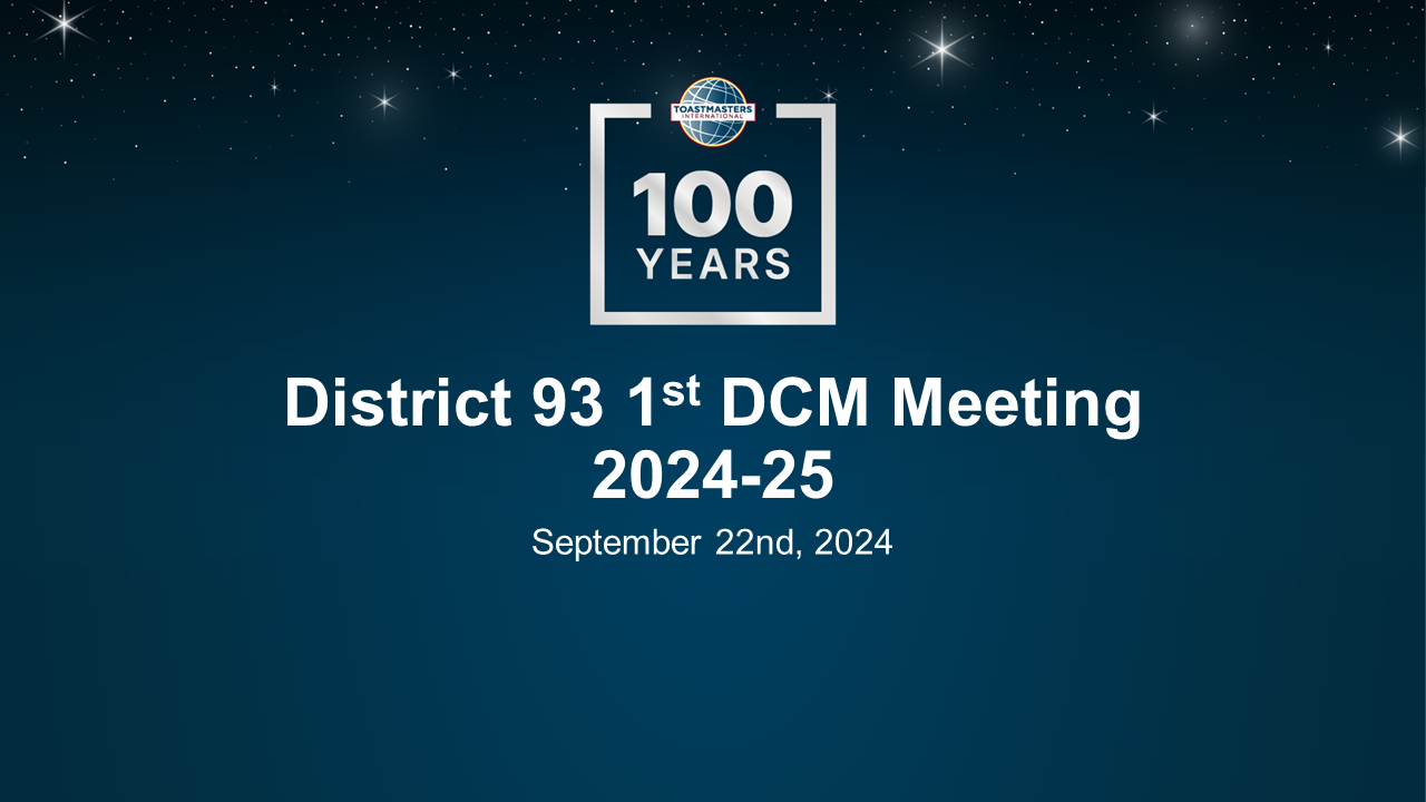 This is an announcement that the first 2024-2025 District 93 Council (DC) Meeting is scheduled to be held online on the 22nd of September, from 7:00 PM to 9:00 PM.