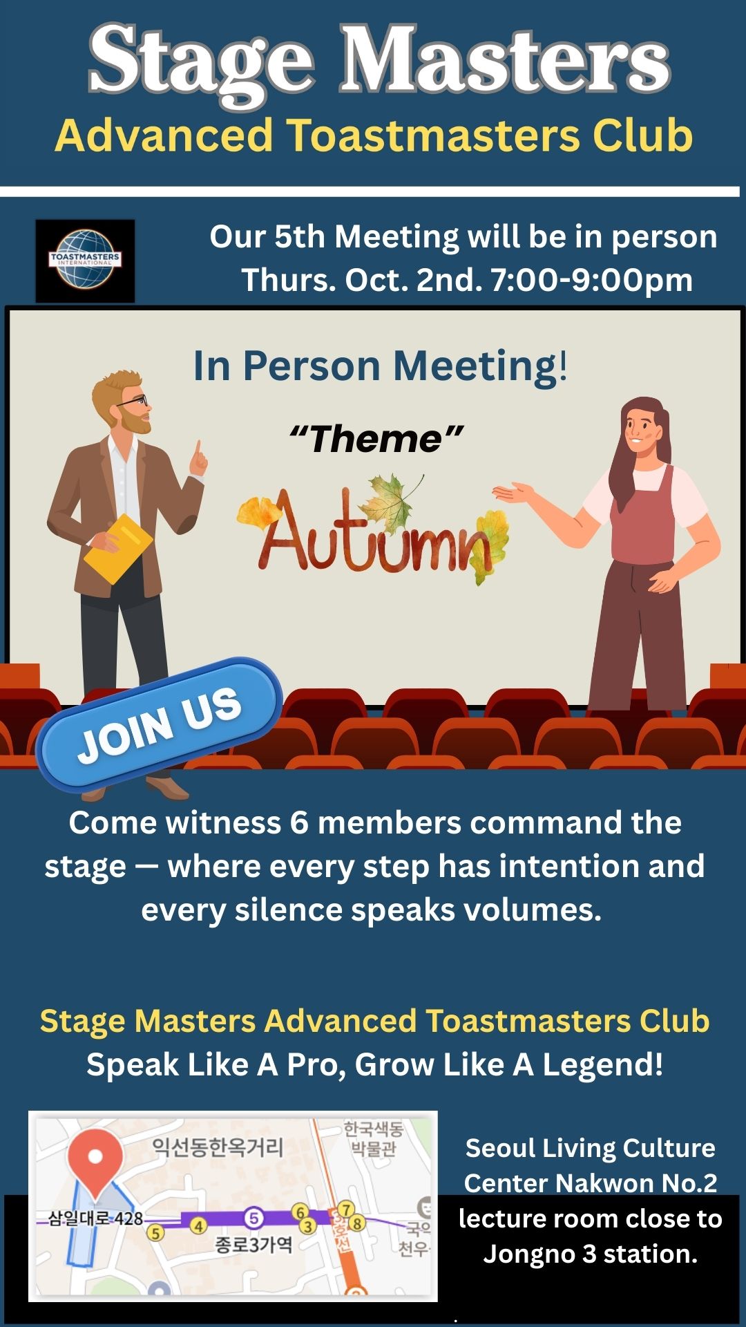 ๐Seoul Living Culture Center Nakwon No.2 lecture room close to Jongno 3 station.