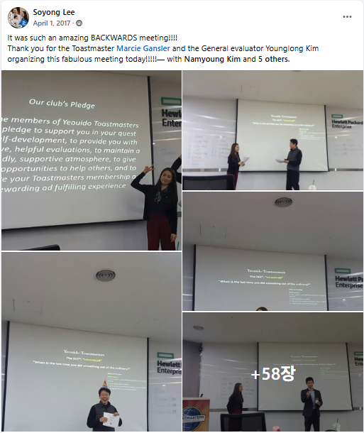 ㅎㅎ 나도 많이 컸다, 2017년 그 때 Backwards Meeting을 어떻게 하지? 했던 내가, 이제는 무대에서 자유자재로 즐긴다.