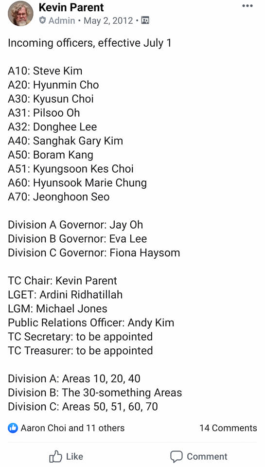 케빈 패런트|3대 디스트릭트 거버너